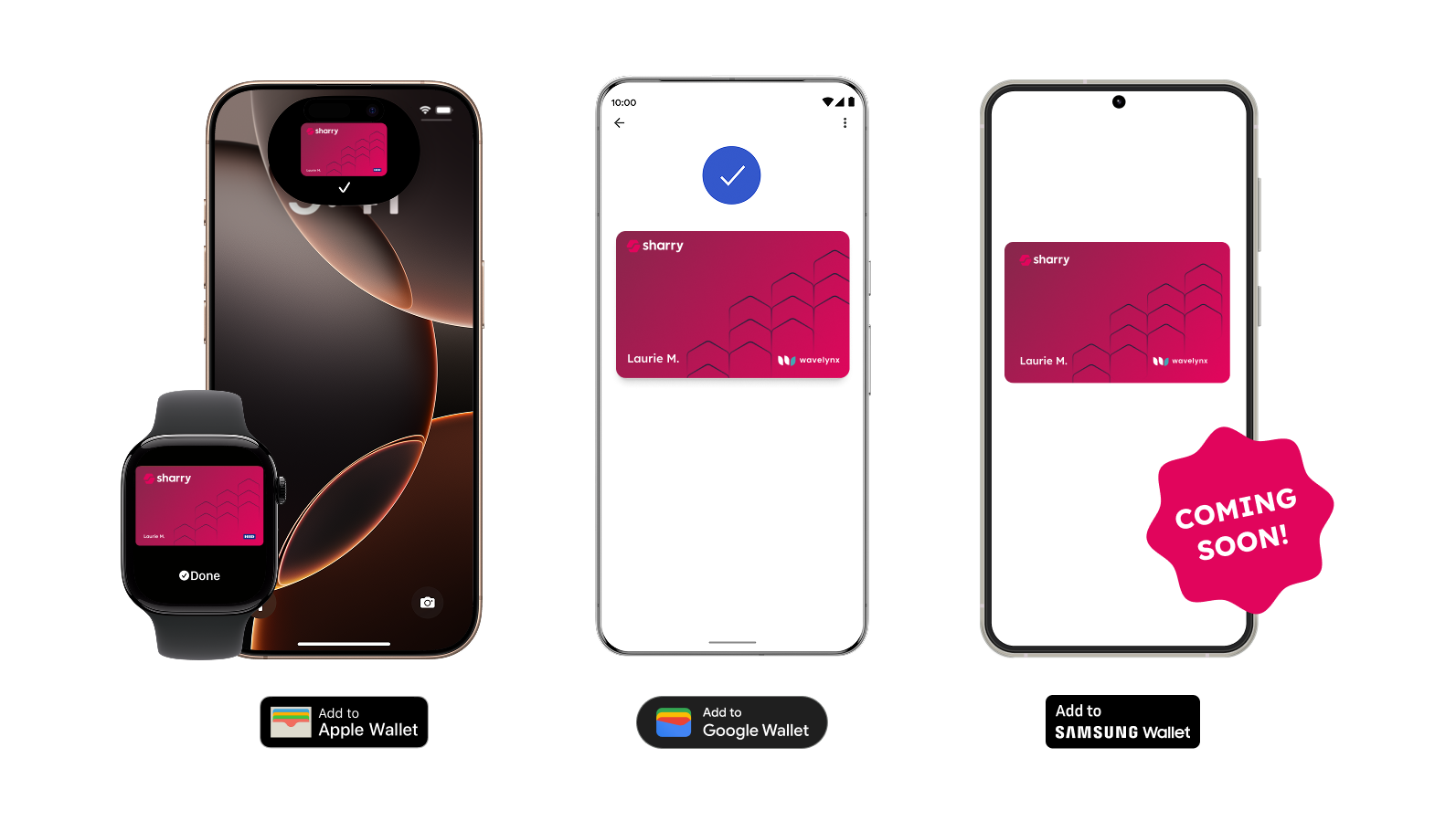 Sharry is the global leader in deploying Wallet-based workplace access. Our solution integrates intuitively with Apple Wallet and Google Wallet, with Samsung Wallet support coming soon. Whether for employees or visitors, badges can be distributed instantly through a white-labeled mobile app or via a simple e-mail. Enable your colleagues to seamlessly and securely tap their phone or smartwatch to unlock office doors, turnstiles, elevators, printers, lockers, and key card-protected amenity spaces.